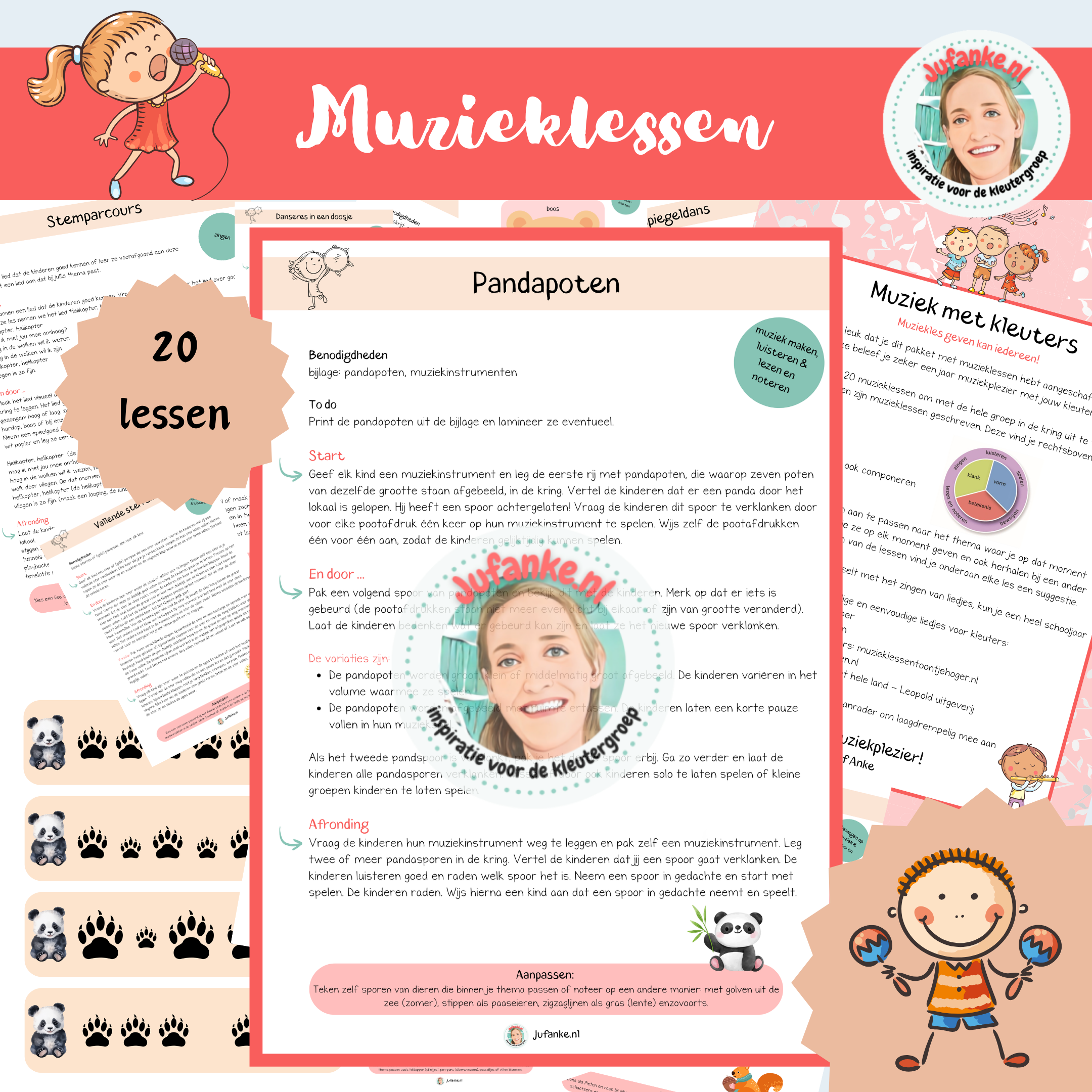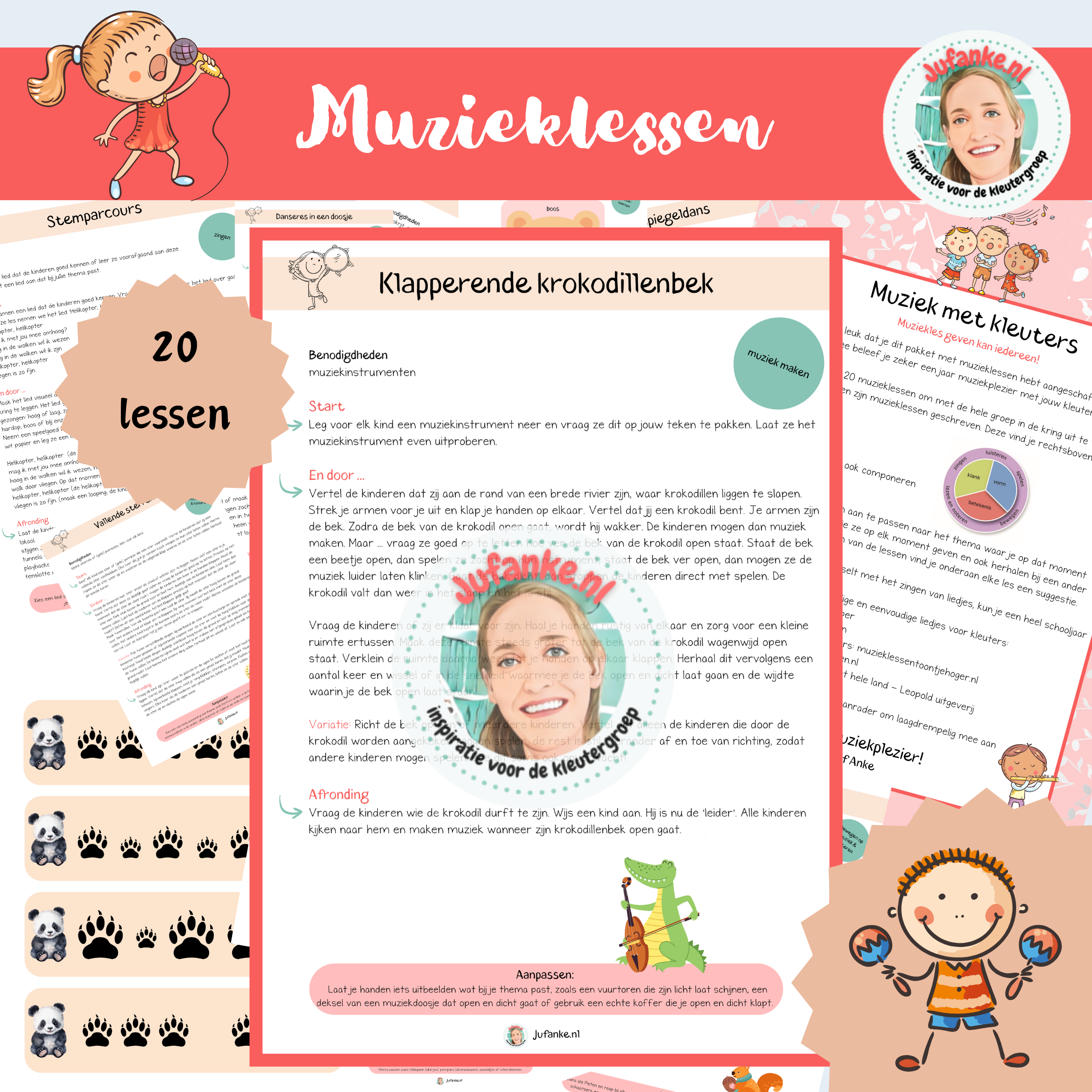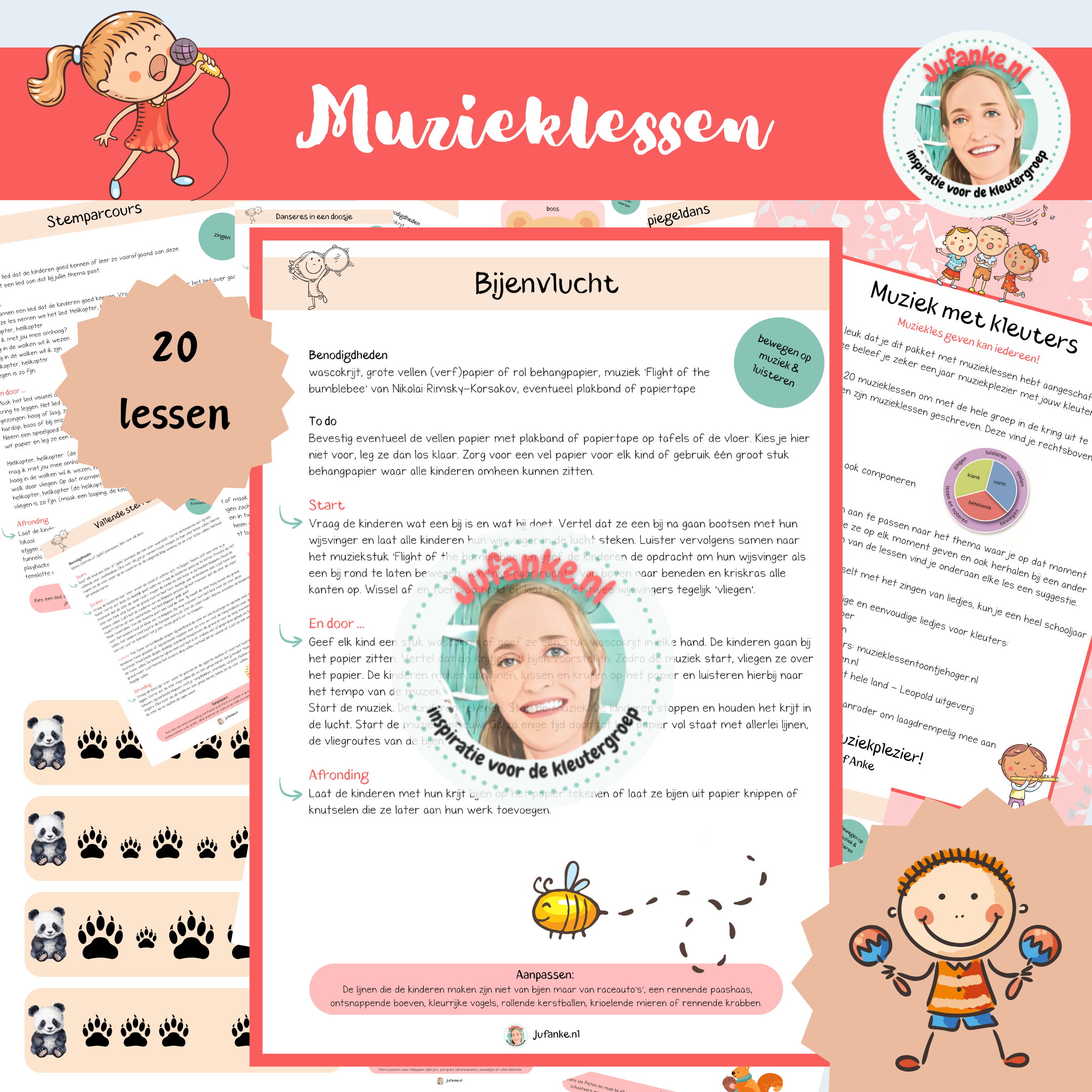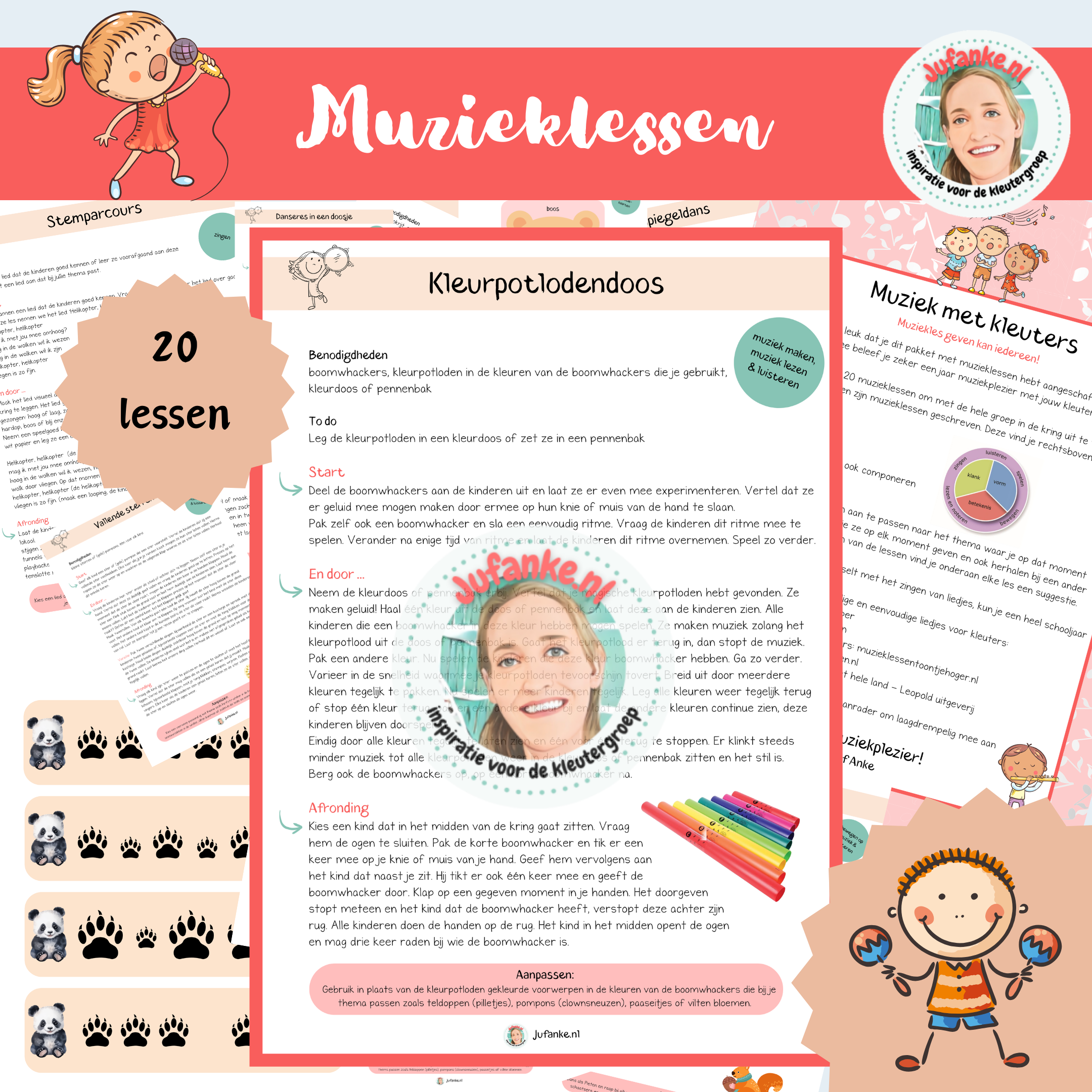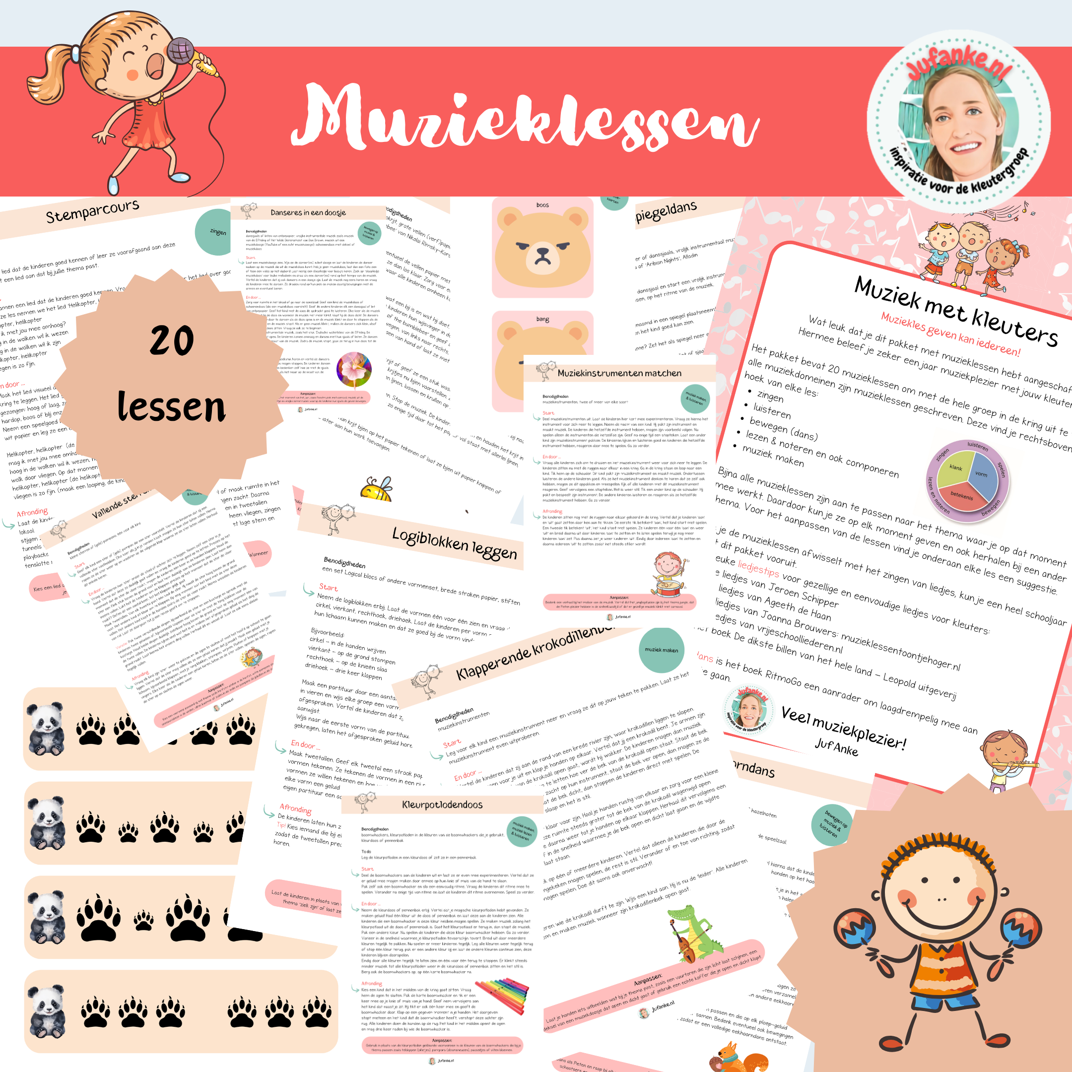 Het pakket bevat 20 laagdrempelige muzikale activiteiten om met de hele groep in de kring uit te voeren. Of je nou muzikaal bent of niet, deze lessen kan je geven!