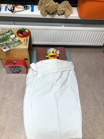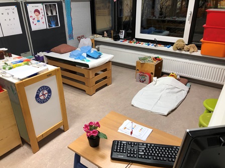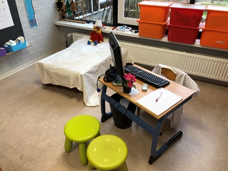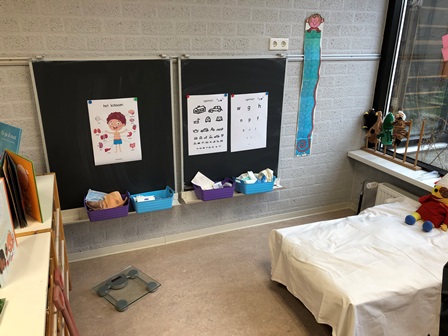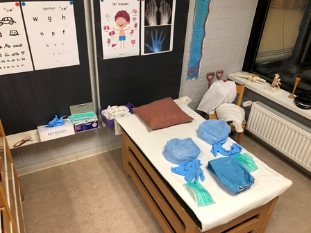 Als de patiënt bij de dokter is geweest, kan hij/zij doorverwezen worden naar het ziekenhuis. Wanneer er geen doktershoek is, staat de ziekenhuishoek op zichzelf. Denk bij de inrichting van de ziekenhuishoek aan: