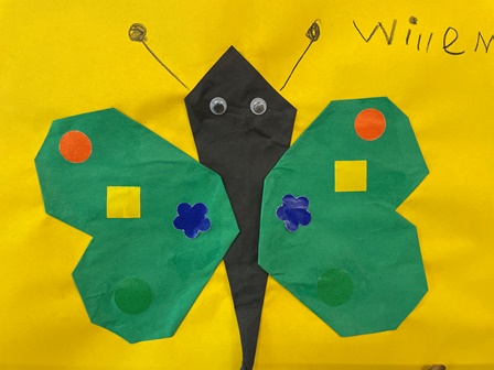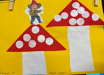 Het kind plakt de vouwen met kleuterplak dicht (plak hoeft alleen op de randen) en plakt het werk eventueel op een groter vel papier.