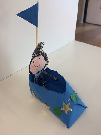 In de knutselhoek of het ‘atelier’ in mijn lokaal wordt volop zelfstandig door de kinderen gevouwen. Ze gebruiken hiervoor vouwvoorbeelden uit vouwboeken die in de knutselhoek staan. Zelf vind ik de vouwboeken van Thea van Mierlo het fijnst, zij geeft de stappen heel duidelijk weer. De kinderen weten precies wat ze wanneer moeten vouwen en waar en wanneer ze moeten knippen. In onze knutselkast liggen volop vouwbladen.